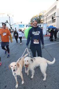 Chase Swanson posed with his dogs for Sleighbells on the Square 5k